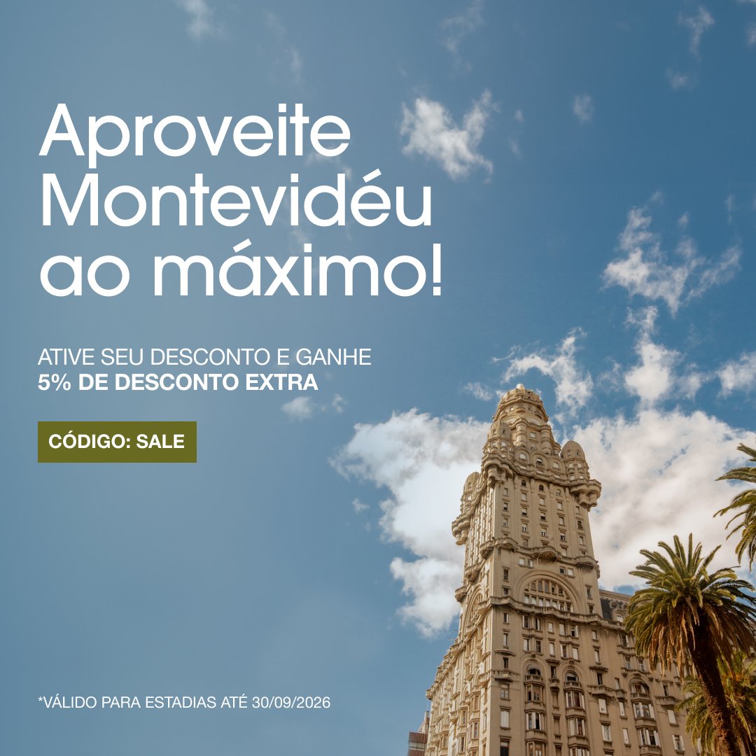 Insira o código SALE (em letras maiúsculas) e garanta 5% OFF na sua reserva. Você verá o desconto aplicado na tela final do processo de reserva.
